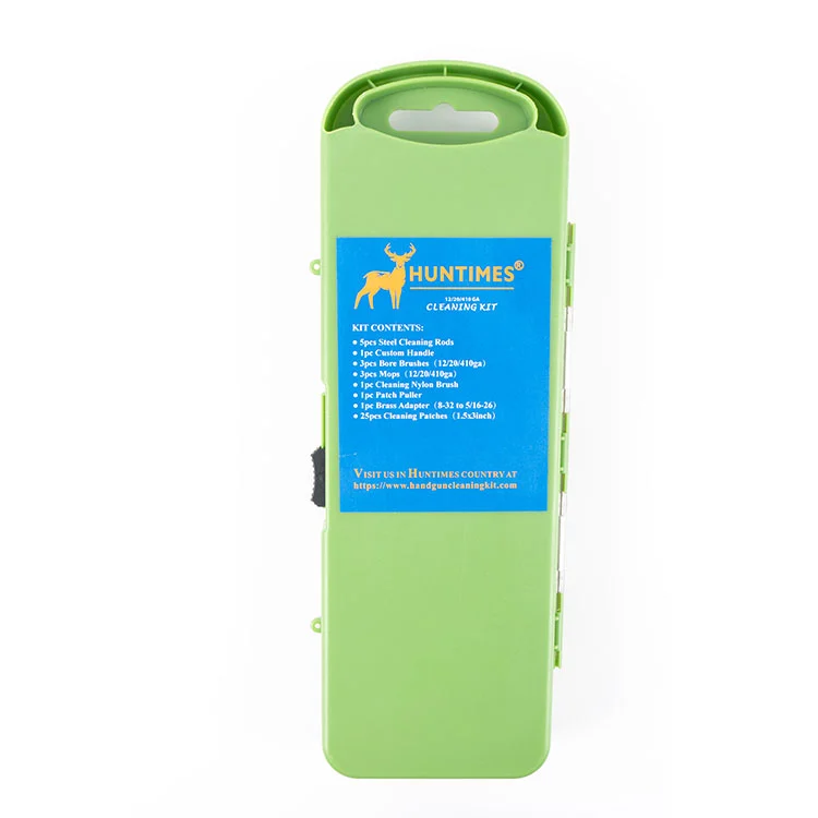 Causam portatilem plasticam cum lance pustula praebemus pro 12/20/410GA pyrobolum ornamentum cum manubrio purgandum. Ornamentum includit 5 ferrum purgans virgas, manubrium consuetudo, 3 pertergetes gerebat (12/20/410ga), 3 mops (12/20/410ga), 1 purgatio nylon peniculus, 1 panni pullarius, 1 aes adaptor (8-32 ad 5/16-26), et 25 pittacia purgans (1.5x3 pollices). Hoc productum solutionem comprehensivam praebet ad necessitates purgandas gun. Consuetudo manubrium commodam tenacitatem efficit dum purgatio. Aes adaptor permittit ut facile reponenda capita purgatio, dum commissura REMIGATOR adiuvat ad remotionem efficacem inaequaliter purgandi. Magnitudo inaequalis purgationis est 1.5x3 digitorum, quae loca dura ad loca pervenire potest.